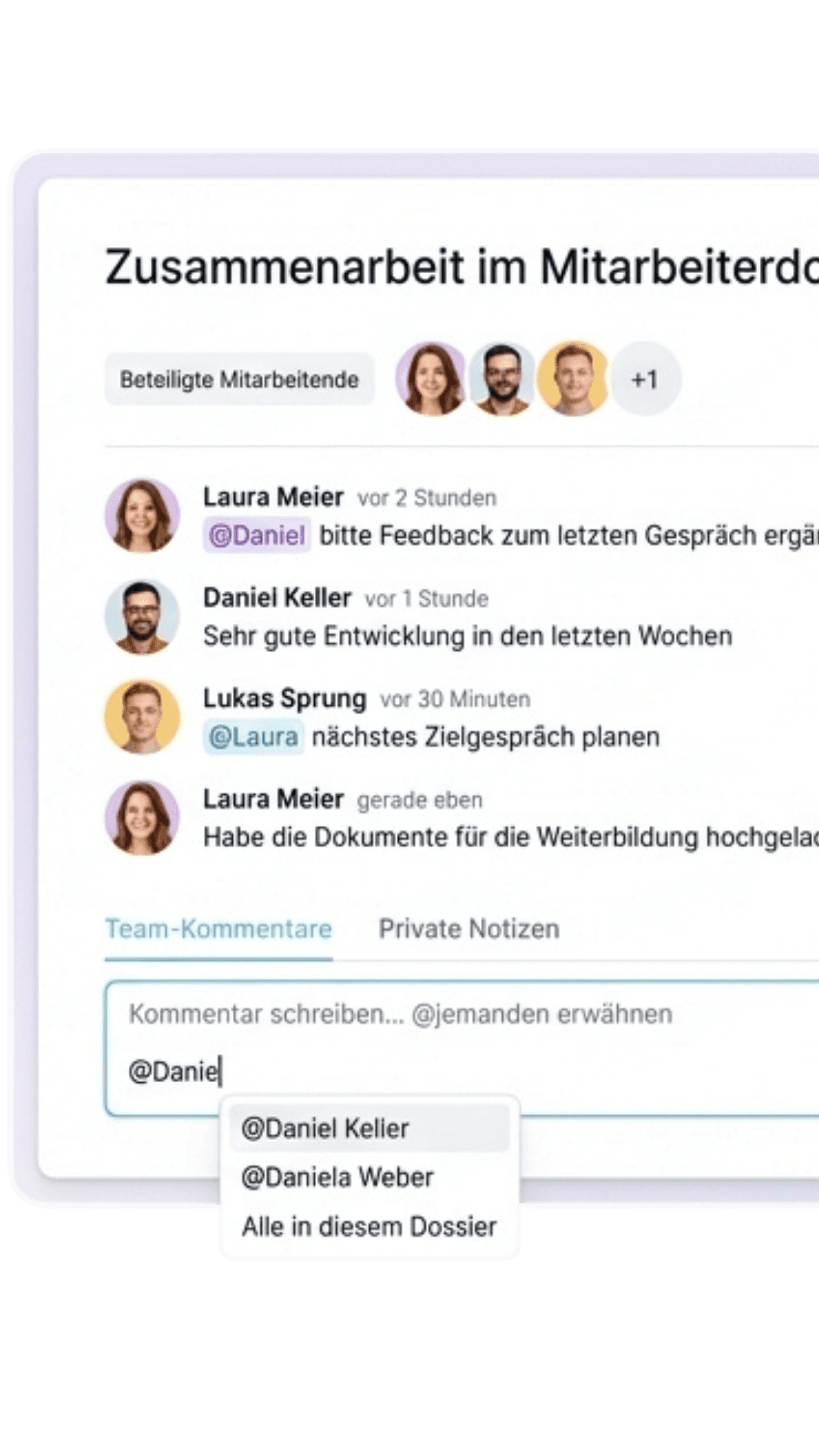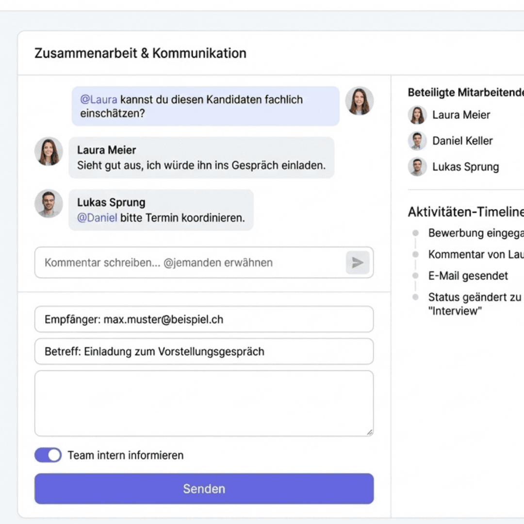 Lade Kolleginnen und Kollegen ein, die für eine Stelle mitverantwortlich sind. Feedback und Entscheidungen laufen direkt im System — schneller besetzen, weniger Abstimmungsaufwand.