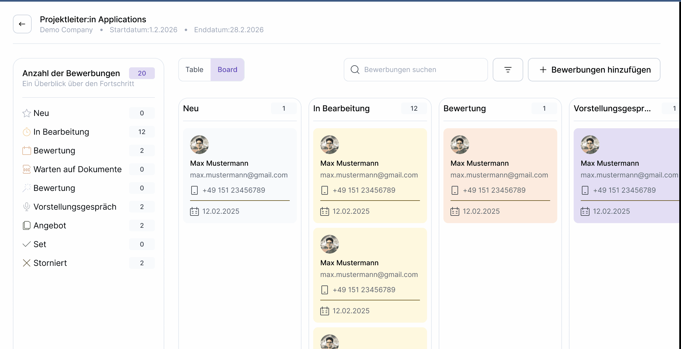 Alle Bewerbungen an einem Ort. Sofort sehen, wer sich beworben hat und wo jeder Kandidat steht.