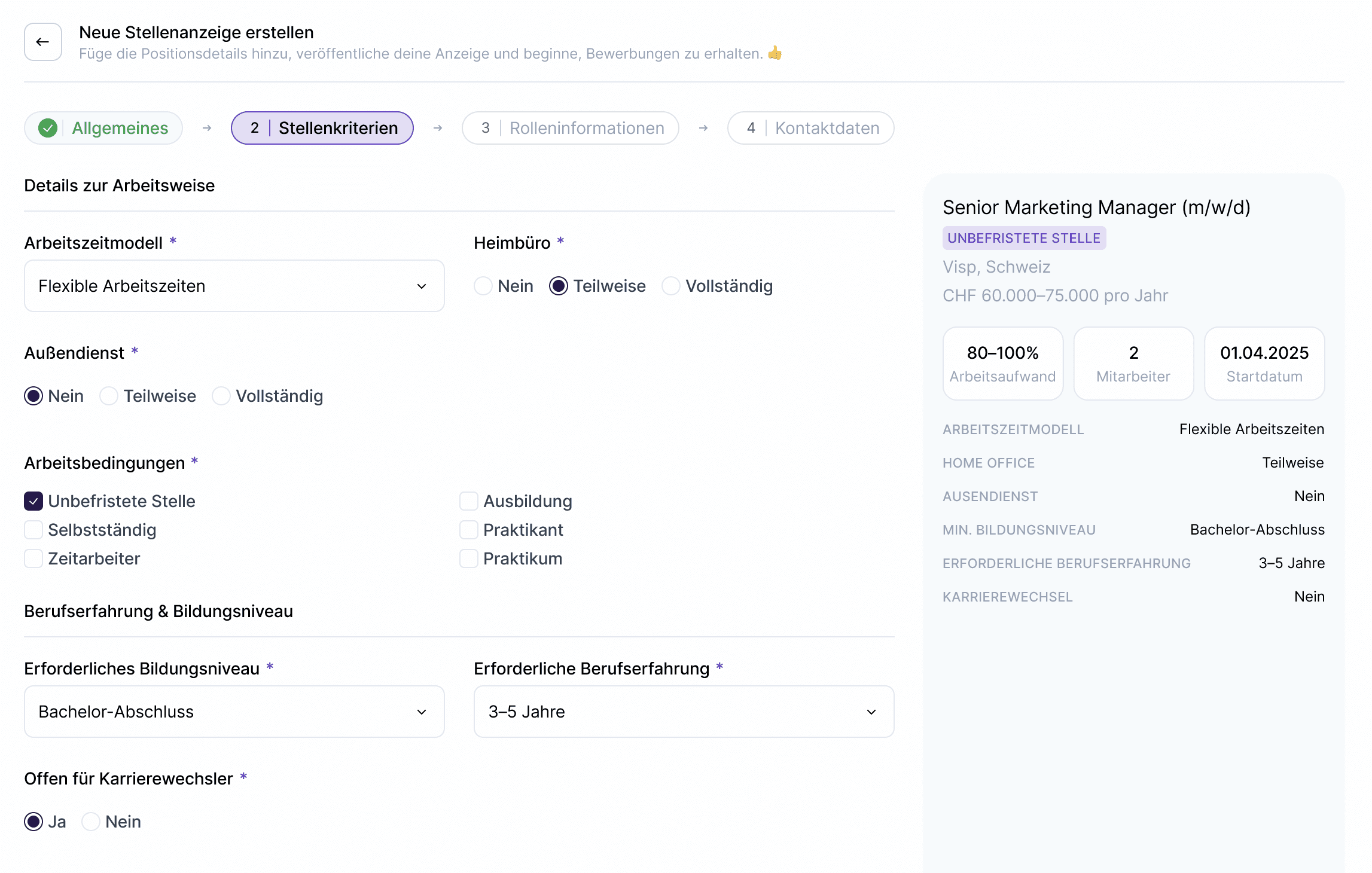 Erstelle Stellenausschreibungen, veröffentliche sie auf mehreren Plattformen und verwalte alle Bewerbungen zentral — alles in einem Workflow.